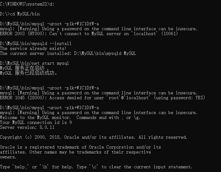 win10下MySQL 8.0登录Access denied for user‘root’@‘localhost’ (using password: YES)问题的解决方法