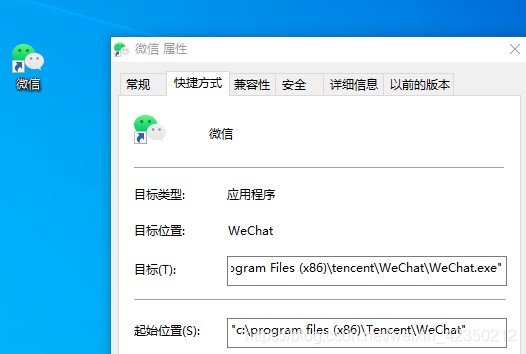1、在你的PC端,通过微信启动的快捷方式,在属性中 找到微信启动路径。