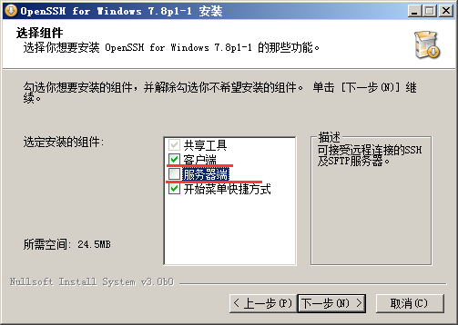 这里因为我们是使用SSH连接Linux所以只需要客户端就可以了,取消“服务器端”的选择
