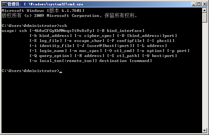进入windows的命令行工具,输入ssh命令,出现下面信息即表示我们安装成功