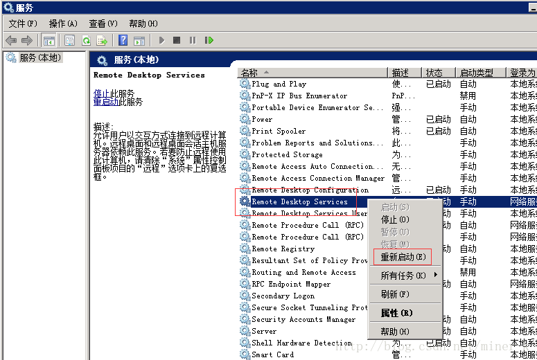 重新启动Remote Desktop Server